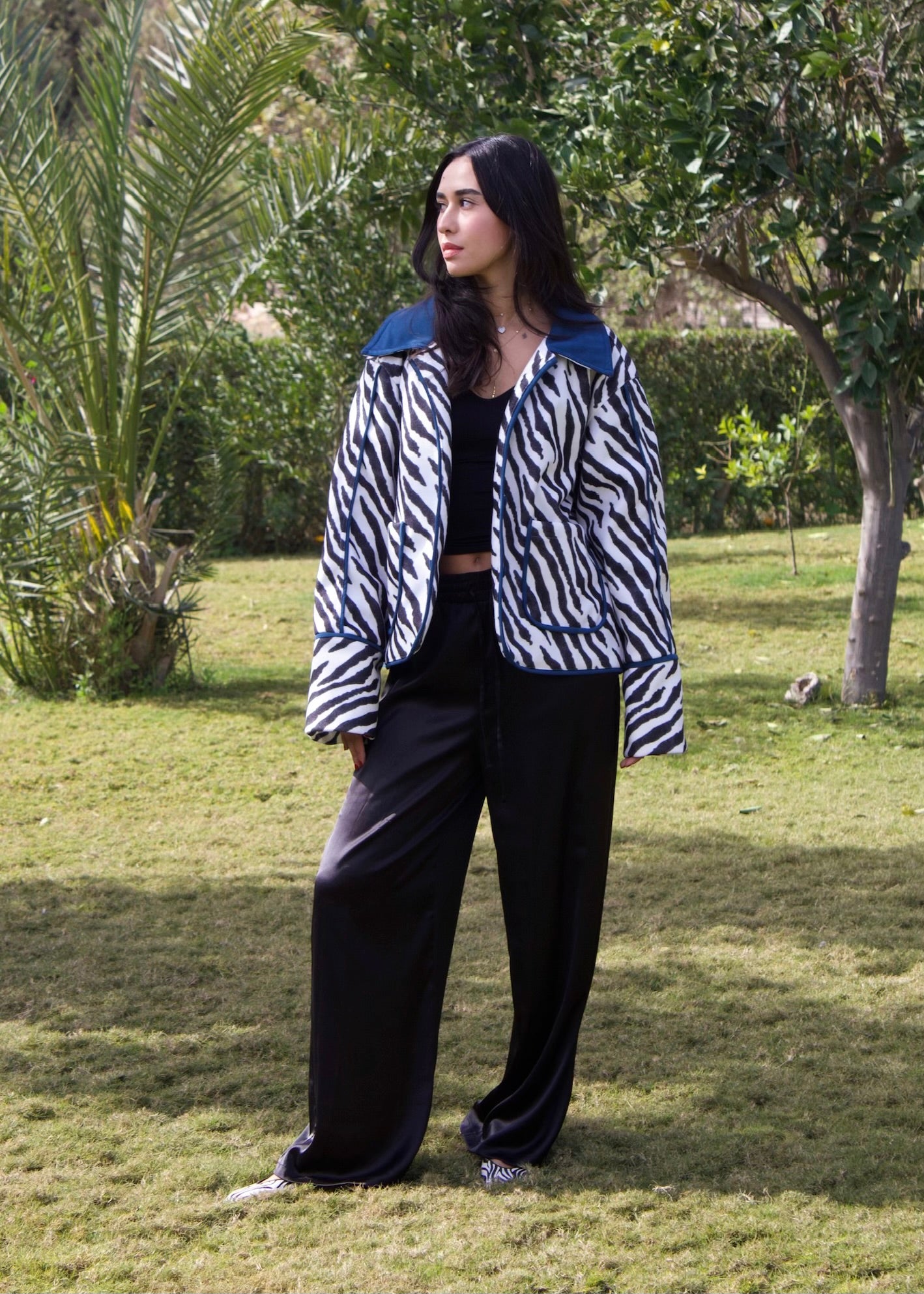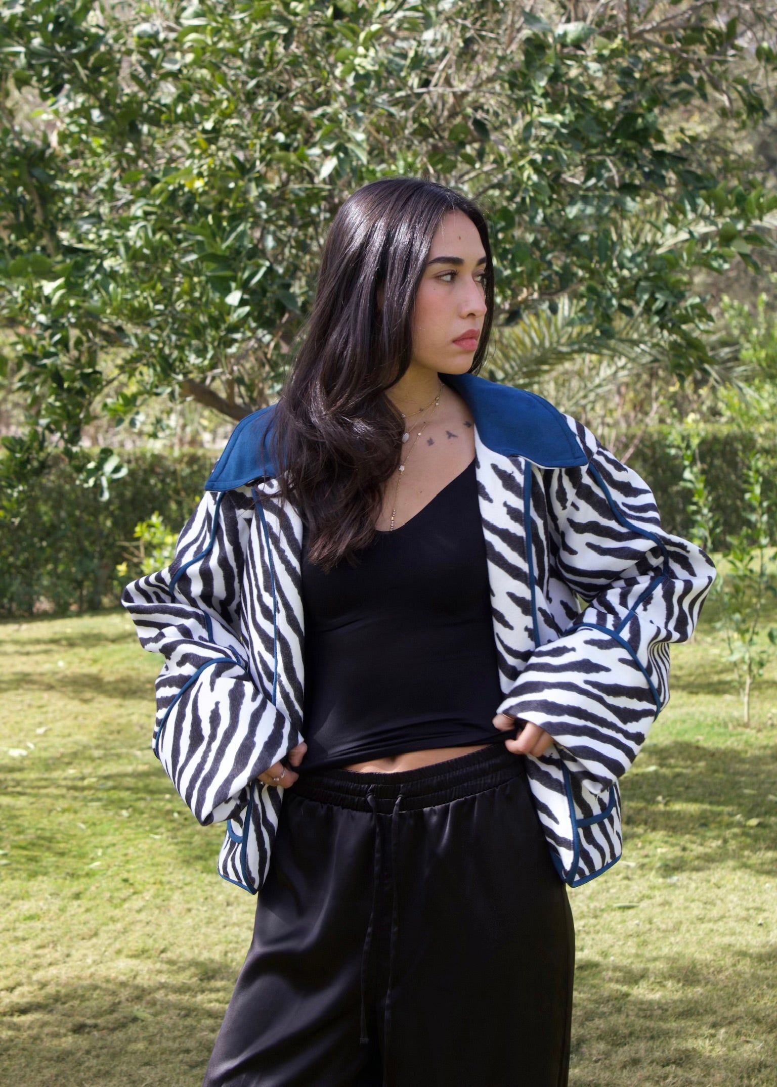 Zebra print exterior, electric blue soul, and stitched by hand in limited pieces.